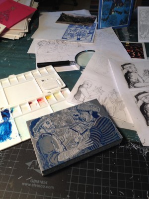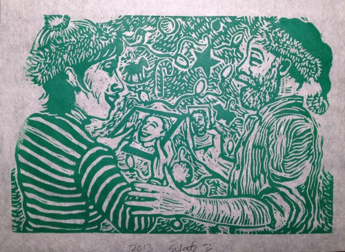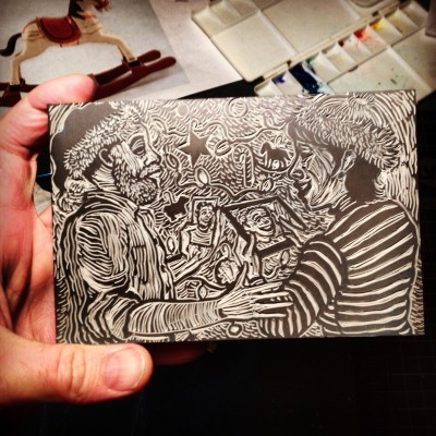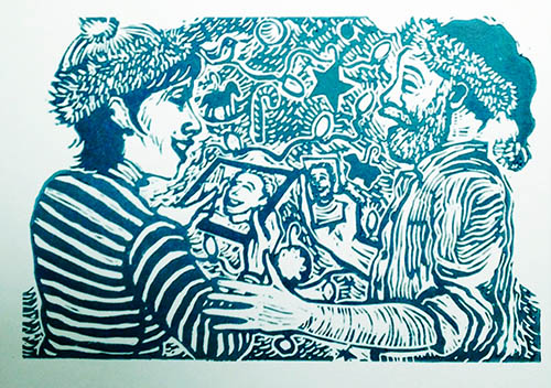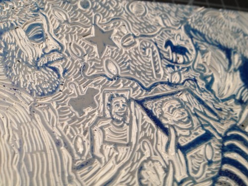 Lina moved to Chicago. Logan moved across town in Boise. Melissa and I are without our beloved kids in the house. So we text ’em, FaceTime ’em, call ’em, and look forward to visits. The Christmas card this year still shows the family together, made possible by the miracle of technology. Not to mention the miracle of finishing the carving without gouging my thumb or cutting through a necessary detail in the portrait, like a nose or an eye or a frosted doughnut Christmas ornament.
