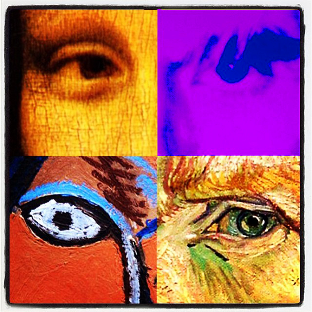 Today Melissa and I worked together on an image for the next exhibit for the artists’ alliance. The show’s called “Four Eyes: An Optical Collusion” and requires each participant to work with another. Here’s what we came up with to help get the word out for the show: