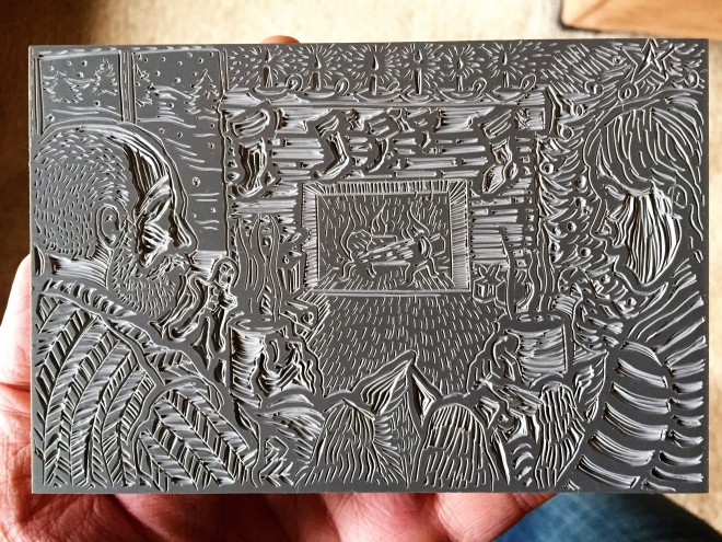 Now it’s time for the Moment of Awe that is a unique joy for printmakers. It happens every time you ink the block, press the paper on it, and peel back the first print. It’s a mixture of elation, pride, and whatever that feeling is called that describes being on top of the world.