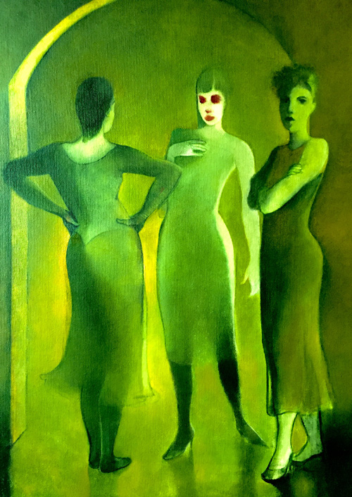 I saw a photo of Green Goddesses recently and noticed a lot of glare, so I wanted to fix it. I imported it into my favorite digital painting app, Sketchbook. Five hours later, it was ready to go. While I was drawing I couldn’t help but make a few other corrections and additions. See if you can find ’em.