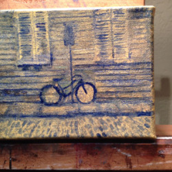Bicycle painting, oil on canvas, painting in progress, cobblestone street in the French Quarter