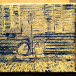 Bicycle paintiing in progress, oil on canvas, square, sketch