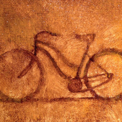Bicycle painting in progress, oil on canvas, underpainting