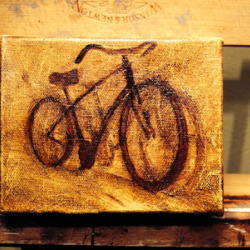 Bicycle painting in progress, underpainting, oil sketch